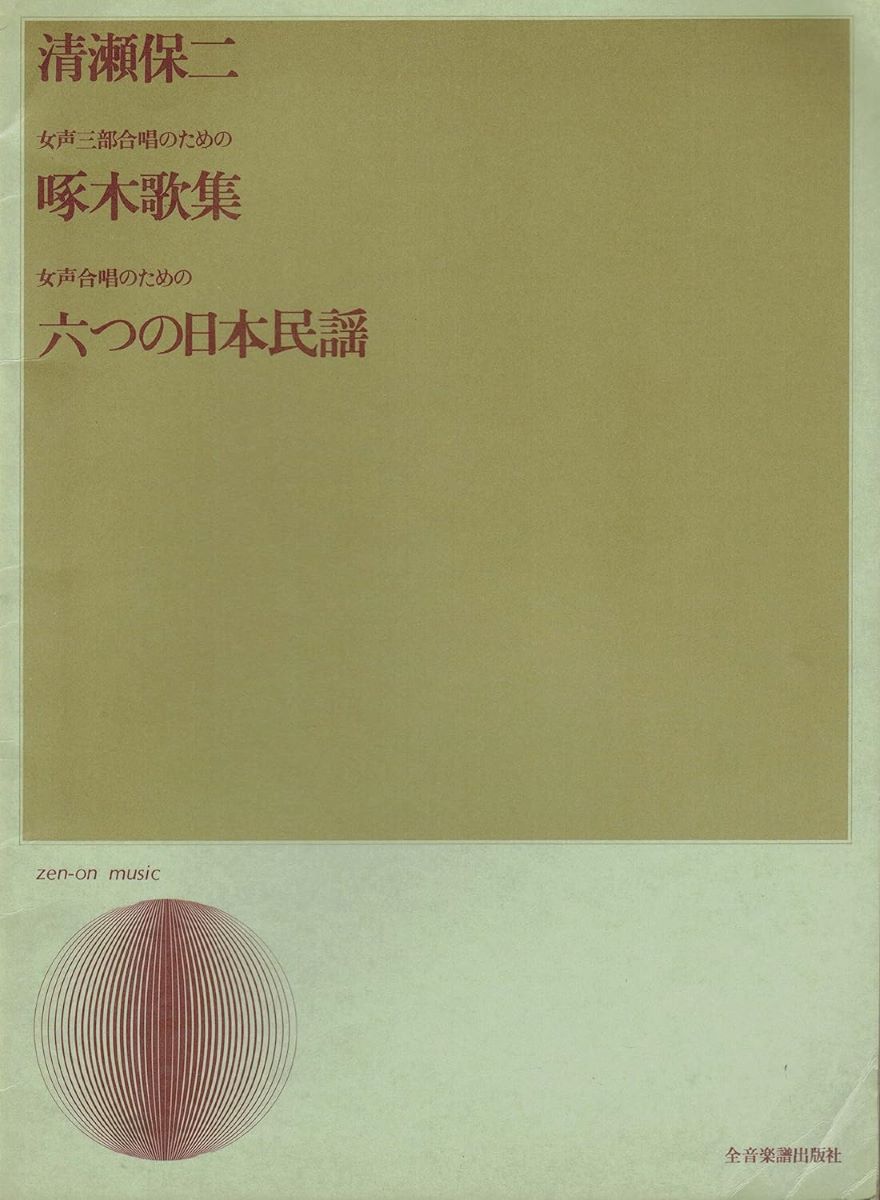 楽譜 清瀬保二 女声合唱のための 啄木歌集/六つの日本民謡 / 全音楽譜出版社