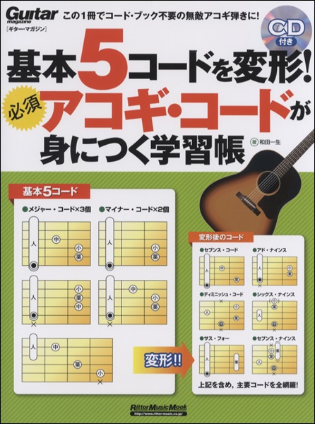 本書はたった5つのコ-ド・フォ-ムを変形させ,膨大な数のコ-ドを導き出すという他に類を見ない内容になっています.しかし,さまざまなコ-ドを知っている人は,本書のような方法で覚えることが多いようです.受験勉強でもそうですが,覚えるという作業は「いかに記憶容量を節約するか」が勝負の分かれ目になります.コ-ド・フォ-ムを覚えるのも同じです.つまり,本書の方法で覚えていけば,記憶容量を大幅に節約できるわけす.だから,すぐに思い出すことができるのです.コ-ド・ネ-ムを見た瞬間にフォ-ムを押さえなければならない弾き語りでは特に役立つでしょう.また,結果として,コ-ドの構成も理解できるようになる点も見逃せません.ということで,本書をある程度,読み進めたら理論書にチャレンジてみてください(本書の基本編が大体理解できればOK).本書がみなさんの活動範囲を広げるキッカケになることを心より願っています.(編集部/額賀)