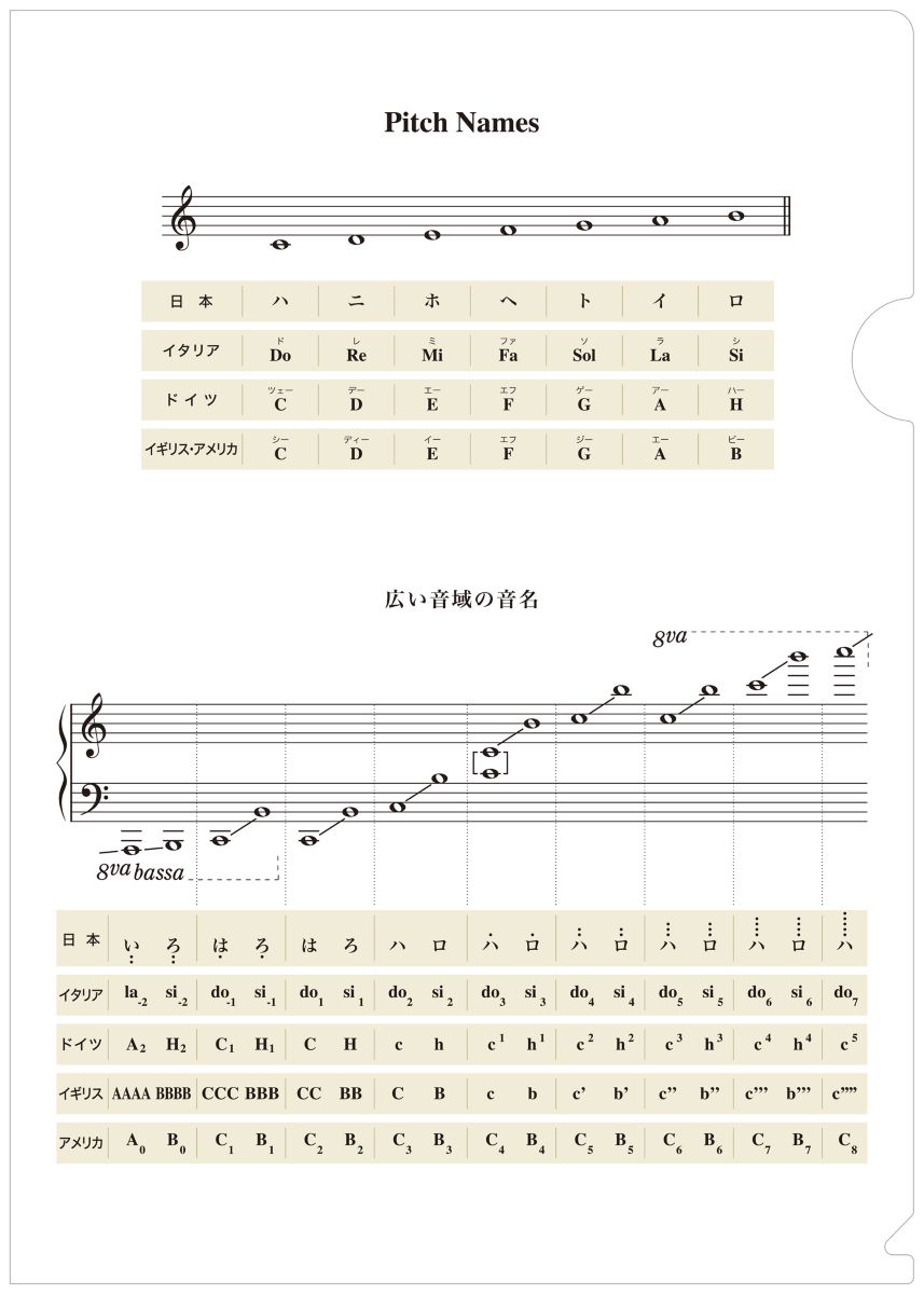4か国語(日本語・イタリア語・ドイツ語・英語)による音名を掲載したA4用のクリアフォルダ-です.・内藤雅子 編著・版型:A4・ISBNコ-ド:9784866338385・JANコ-ド:4560378551000・出版年月日:2023/11/29