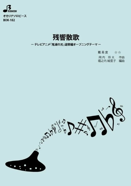 作曲:飛内 将大編曲:堀之内 絵里子難易度:中級演奏時間:2:34使用楽器:オカリナ(AC)備考:Aimer/テレビアニメ「鬼滅の刃」遊郭編オ-プニングテ-マAimerの代表曲の数々を手掛けてきた梶浦由記が楽曲提供&プロデュ-スを担当.Aimerは,2022年2月まで放送されていたテレビアニメ「鬼滅の刃」遊郭編のオ-プニングテ-マ「残響散歌」とエンディングテ-マ「朝が来る」を歌っている.・版型:A4・JANコ-ド:4529737171822・出版年月日:2024/09/17