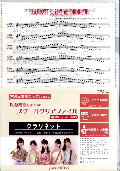 管楽器奏者に欠かせないスケ-ル練習の楽譜がクリアファイルになりました.表面に長調(Dur),裏面に短調(moll)を12調ずつ掲載.4ペ-ジにわたる有名プレ-ヤ-監修の「吹奏楽部員の為の基礎トレ-ニング」の楽譜も付属.スケ-ル練習をもっと身近に感じて練習できるクリアファイルです.