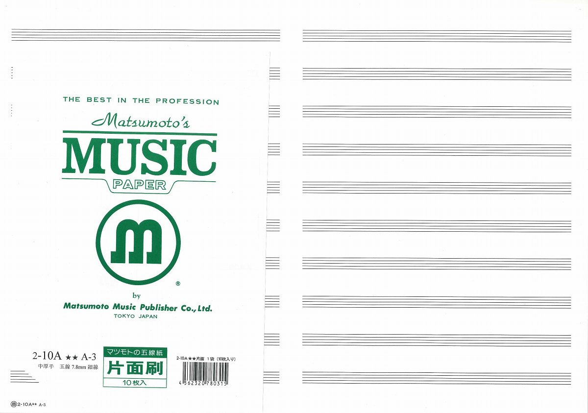 五線紙 パート用 A3判 2-10AA-3片面刷 (1袋:10枚入) / 松本楽譜