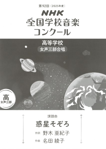 ・第92回(令和07年度)NHK全国学校音楽コンク-ル課題曲 高等学校女声三部合唱 『惑星そぞろ』