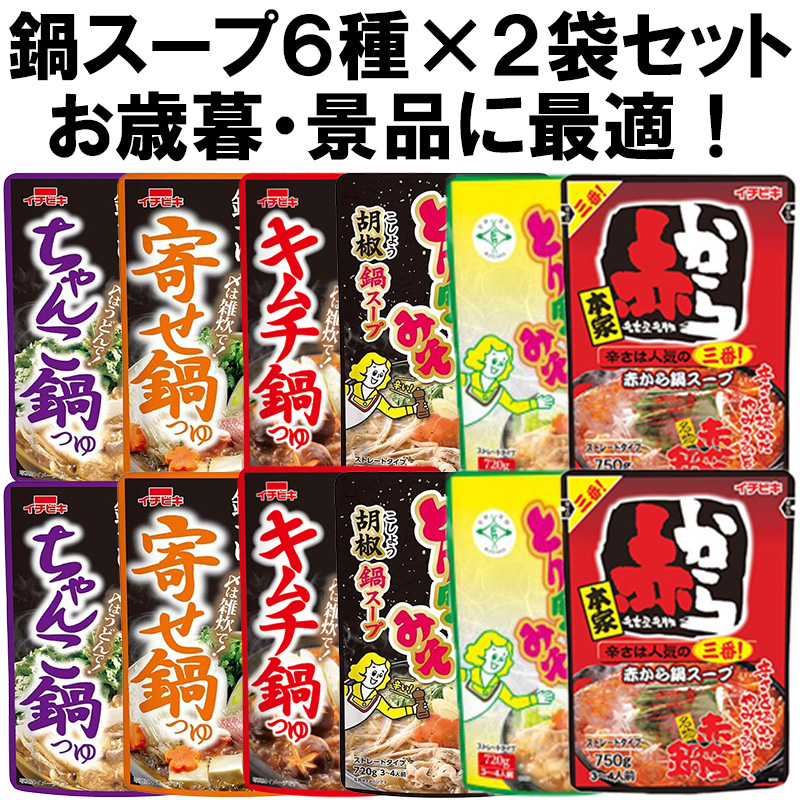 鍋スープ 鍋の素 6種類セット | まつや イチビキ とり野菜みそ 赤から鍋 寄せ鍋 ちゃんこ鍋 送料無料 景品 賞品 忘年会 二次会 福袋 詰め合わせ
