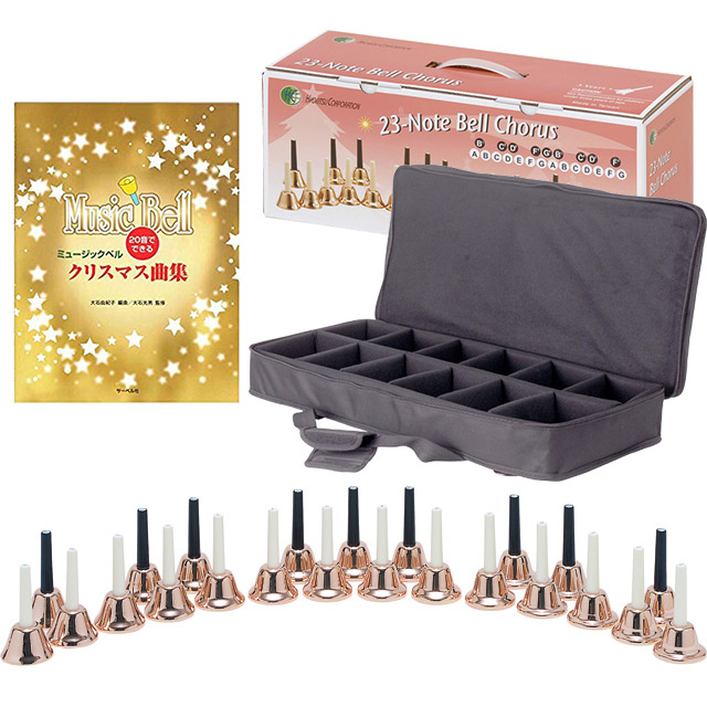 ハンドベル 23音 曲集付き教則本 専用ケ-スセット ミュ-ジックベル ハンドベル メロディ-ベル 23音セット コッパ- ゴ-ルドカラ-