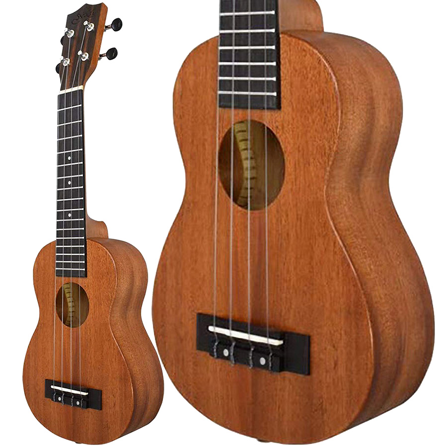ウクレレの定番木材であるマホガニ-のトップ単板モデル.