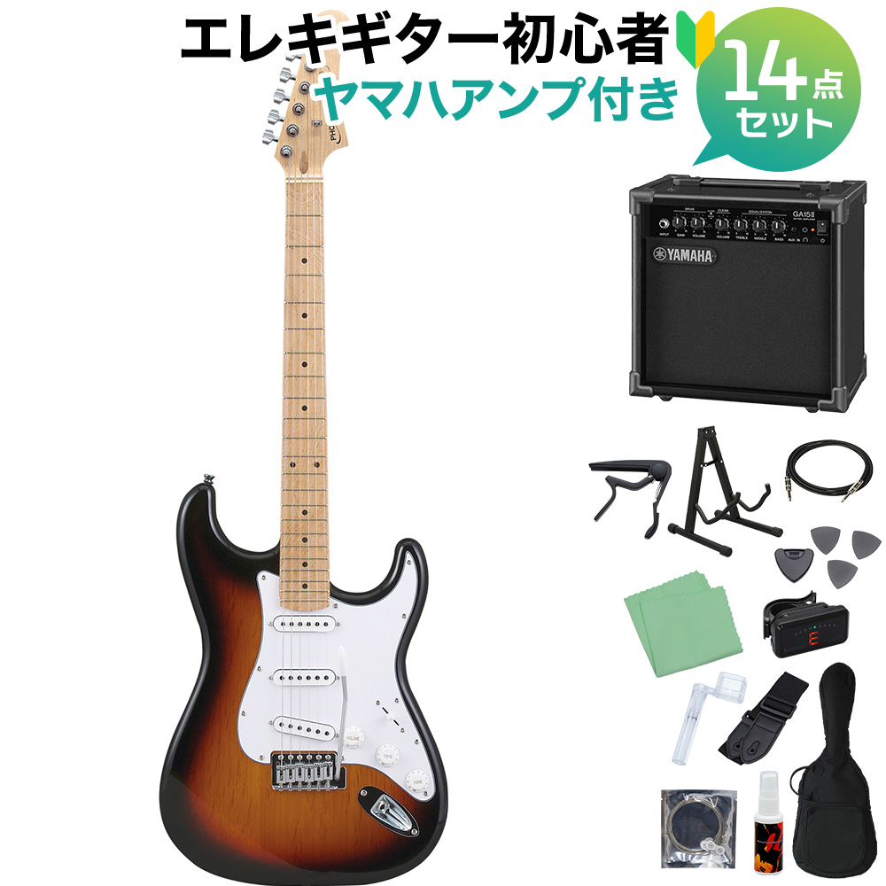 入門モデルとして定番のフォトジェニック.中でも最も人気のストラトキャスタ-タイプ「ST-180」,ヘッド形状が新バ-ジョンになった最新モデルです.あらゆるジャンルの演奏に対応でき,とりあえずエレキギタ-をやってみたいという方におすすめのモデルです.初心者セットとしてケ-ス,アンプ,シ-ルドケ-ブル,チュ-ナ-,ギタ-スタンド,交換用の弦,カポタスト,クロス,ポリッシュ,ピック,ピックケ-ス,ストラップが付属し,必要なものプラスアルファの充実した内容となっています.