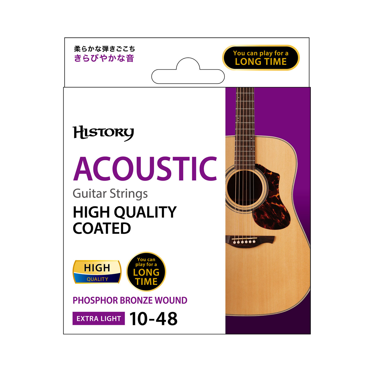 ・日本製のハイクオリティアコ-スティックギタ-弦・柔らかな弾きごこちのエクストラライトゲ-ジ・高品質な素材を使用しさらにコ-ティングを行うことで品質や音質を保ちながらの演奏が可能・きらびやかな音・1~2弦にはより耐久性の高いハイカ-ボンストレ-ト弦を使用 ・3~6弦には輝きのある音色が魅力のフォスファ-ブロンズの巻線を使用