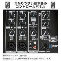 コントロ-ル主音量(MASTER VOLUME),CHANNEL 1,2 VOLUME(チャンネル1,2音量),ラインマイク切り替え,Bluetooth VOLUME(音量),TREBLE BASS EQ(高音,低音) SUB(ウ-ハ-音量) REVERB(リバ-ブ量)