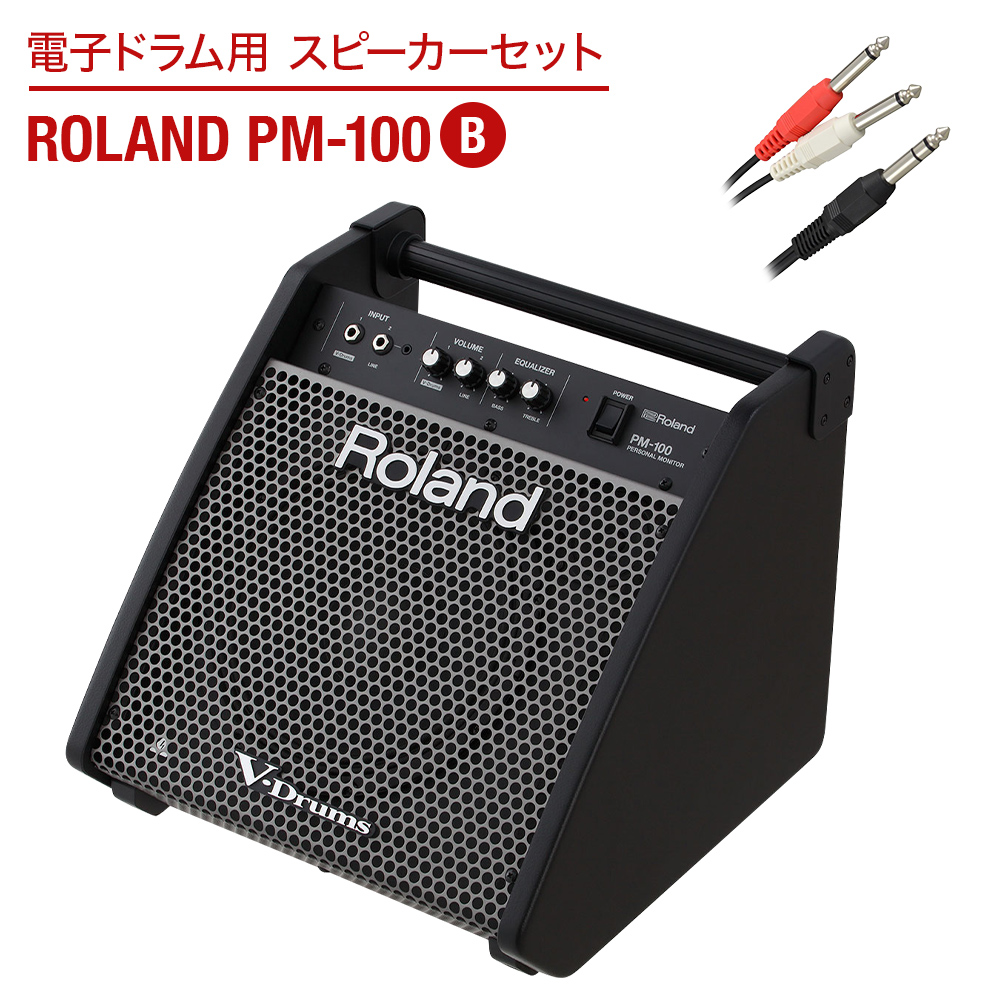 【本体に合わせた接続ケ-ブルがセット】ドラム用スピ-カ- Roland PM-100 Bセット【音声出力がLR(モノラルフォン×2)の電子ドラムに対応】