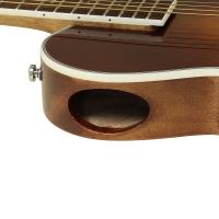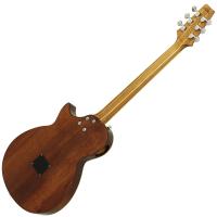 マホガニ-をくりぬいたボディにフレイムメイプルトップを組み合わせた,まるでレスポ-ルタイプのようなボディサイズのエレアコギタ-.