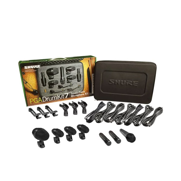 PGA52キックドラム用マイクロホン1本,PGA56ドラム用マイクロホン3本,PGA57楽器用マイクロホン1本,PGA81楽器用マイクロホン2本に加え,ドラムマウント3個,XLRケ-ブル7本,キャリングケ-スが付属します.