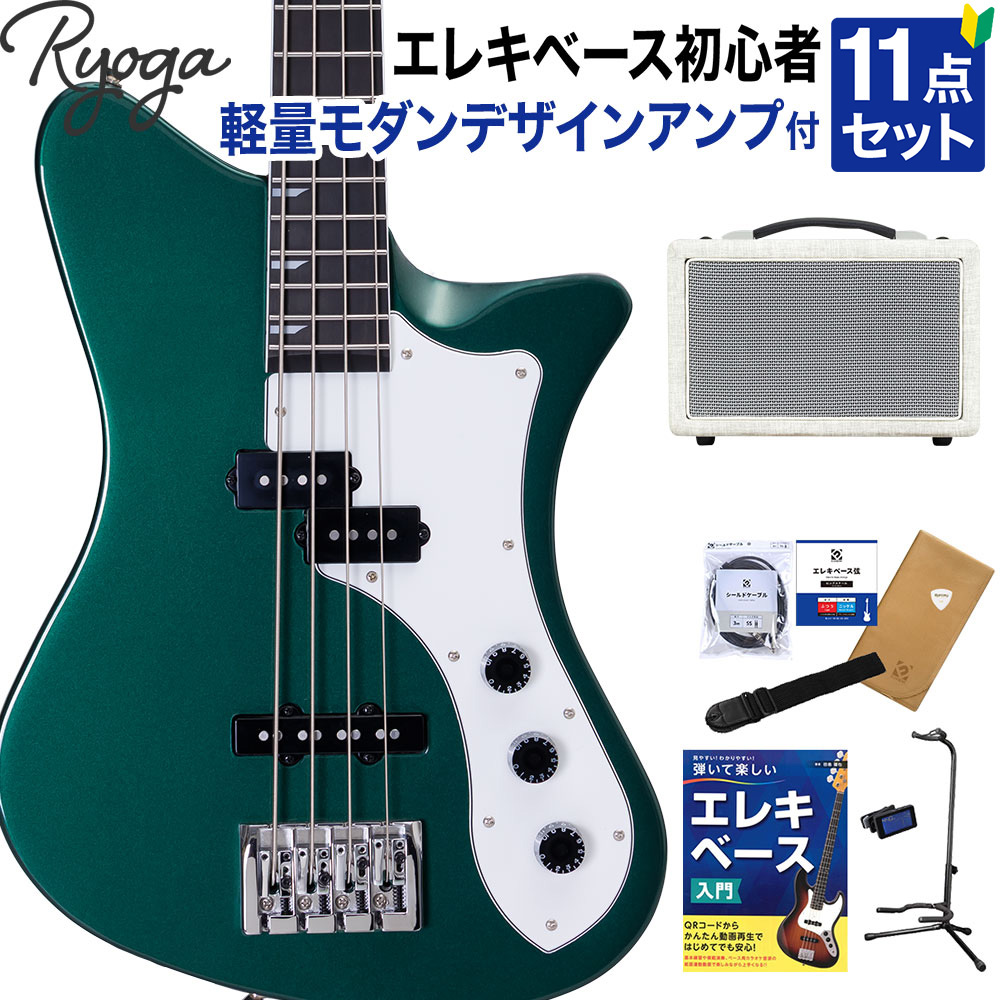 Ryoga リョウガ SKATER-BASS Deep Forest Green 初心者11点セット 島村楽器で一番売れてるベースアンプ付 ベイクドメイプルネック ディープグリーン