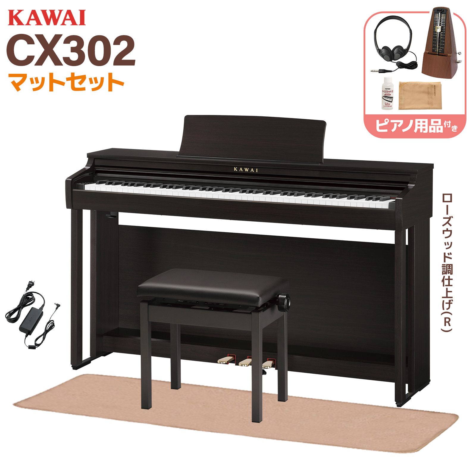 2025年楽器店大賞 大賞受賞 KAWAI カワイ 電子ピアノ 88鍵盤 CX302R ローズ調仕上げ イトマサマット&メトロノーム付 配送設置無料・代引不可 CN201後継機種