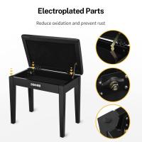 Donnerピアノ椅子は厳選された無垢材を採用し、耐用年数が長く、演奏中の激しい動きにも耐えられる安定性を持ち、耐荷重は140kgです。弾力性に優れておる高密度スポンジを採用し、薄すぎず柔らかすぎず適度なクッション性があるので、長時間座って練習していても疲れません練習中の滑りを防ぎ、ピアノチェアを動かした際の引っかき傷から保護するために、椅子の足に防振ラバーパッドが付いています。キーボード椅子の座面の下に楽譜や小物の収納スペースがあります。サイズ:高さ48cm × 幅74cm × 奥行き34cm