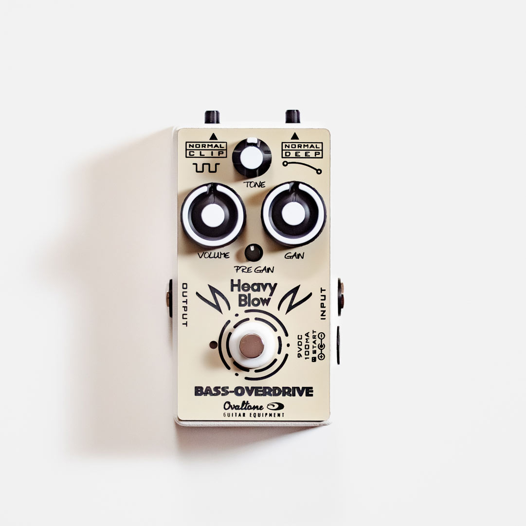 HEAVY BLOW BASS-OVERDRIVE は Ovaltone 初の,完全にベ-ス専用設計となるオ-バ-ドライブで,わずかなサチュレ-ションを加えるプリアンプ的な使用方法から,自然な原音ブレンドのドライブサウンド,芯まで歪ませたファズに近いドライブサウンドまで,セッティングによって実に多様な役割を担う事の出来るドライブペダルです.