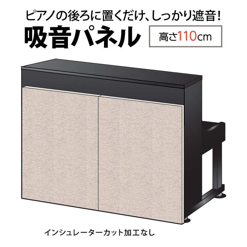 前品番をベ-スに,よりシンプルで使いやすい吸音パネルとしてブラッシュアップしました.遮音シ-トと木枠をなくして軽量化.その分パネルの厚みを10mm増やすことで,ピアノ背面側の遮音性能は従来のナンバ-チュ-ンと遜色のない仕上がりになっています.ピアキャッチやSBI100などの大きなインシュレ-タ-を使用するなどの場合はインシュレ-タ-カット加工ありをご購入ください.