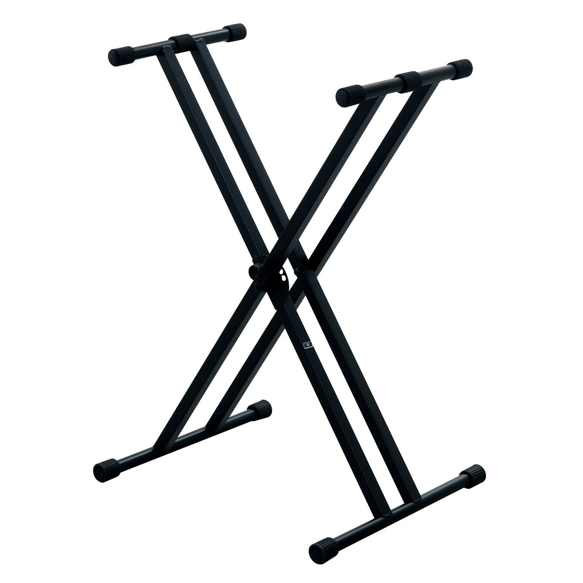 コンパクトに折りたためて持ち運びにも便利なX 型のキ-ボ-ド・スタンド.