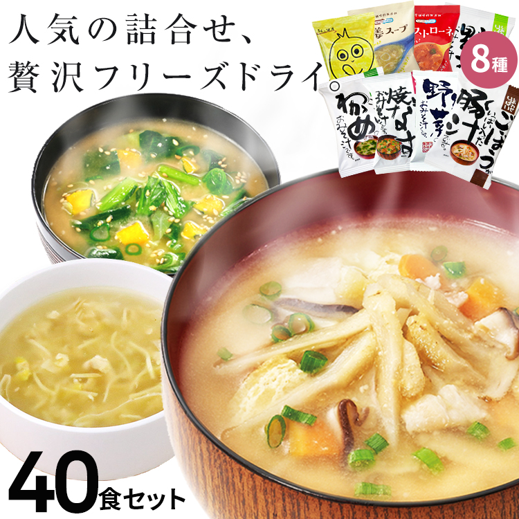 味噌汁 スープ フリーズドライ おすすめ40食セット 食品 化学調味料無添加 詰め合わせ インスタント 贈り物 内祝い お返し ギフト お歳暮 クリスマス