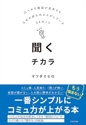 | 商品の説明 | ★「雑談が苦手、でも人に好かれたい」と思っている、すべての人へ 「初対面の人と、何を話したらいいのかわからない」 「とよく言われてしまう」 「どうやって会話を続けたらいいんだろう……」 「ふとしたときのが怖い」 「人の話に興味がもてない」 「話を聞くときは、相手によいアドバイスをしなければいけない」 「いい関係をつくるためには、流暢な話術が何よりも必要である」 「積極的に話すのは苦手だけど、嫌われたくもない」 人とのコミュニケーションにおいて、こんなふうに感じている人は少なくありません。 この本は、そのような悩みや思い込みから、あなたを自由にするために生まれました。 いきなりですが、結論を言います。 人と充実したコミュニケーションを取るためには、上手なアドバイスも、流暢な話し方も、必要ありません。 「相手の話を、しっかり聞く」 まずはそれだけでいいのです。 「質問家」として、これまで10万人以上の話を聞き、悩みを解決してきた筆者が満を持して書き下ろす「聞くチカラ」のすべてをまとめた1冊が誕生しました。 口ベタ、人見知り、雑談が苦手な筆者自身が、いまでは5000人以上の巨大コミュニティを構築するまでに至った「人に好かれるコミュニケーションのポイント」を36に絞り、端的に解説。 これまで筆者が書いてきた「質問」という切り口から、さらに日常のシーンで使いやすいスキルだけを厳選して書き下ろした、マツダミヒロ流コミュニケーションの決定版。 第1章 「話す人」よりも「聞ける人」がうまくいく 第2章 人見知りでも信頼される「聞くチカラ」 第3章 「自分に聞く」と、今日の会話はもっと素敵になる 第4章 雑談が怖くなくなる6つの法則 第5章 聞くチカラが1ランクレベルアップする「魔法の質問」 |