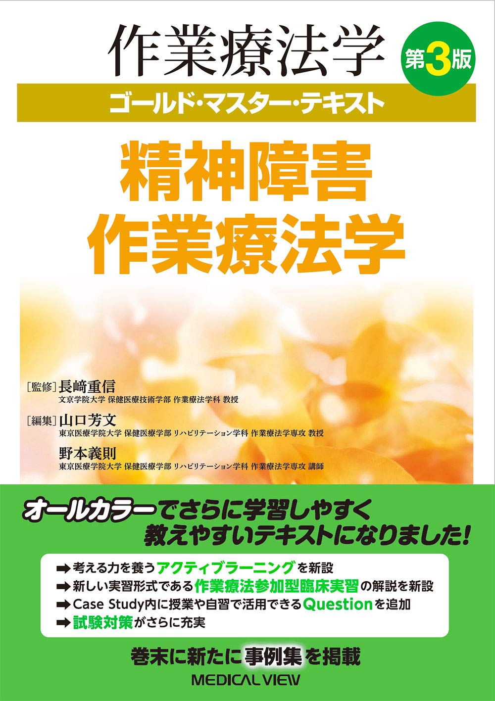 | 商品の説明 (新品の場合) | 作業療法学専門分野の講義用テキスト・シリーズが5年ぶりの改訂。第3版では, これからの学生に役立つ内容を意識し, 能動学習の手助けとなる課題の提示, 新しい実習形式である「作業療法参加型臨床実習」への対策となるような解説を追加し, また国家試験対策を充実させ, さらに巻末付録として症例集の追加などを行った。 本巻では, 現在の精神科医療を取り巻く状況を述べた後, 精神障害領域を理解する土台となる基礎理論について記載。そのうえで, 評価手法, 疾患別作業療法を症例紹介も交えながら解説するとともに, その重要性が高まっている地域作業療法についても解説。また, 精神障害者の行動特徴を示したイラストを多数盛り込み, 精神障害領域をこれから学ぶ読者にも手に取りやすい紙面構成となっている。 【目次】 0 Introduction ? 1 精神障害作業療法学とは 1 基礎概念 ? 1 精神科医療状況概論 ? 2 精神科領域での基礎理論 ? 3 精神科臨床の基礎 ? 4 精神科作業療法の基礎 2 評価学 ? 1 評価の流れと評価手段 ? 2 各種検査法 ? 3 評価のまとめ 3 治療学 ? 1 治療構造 ? 2 治療・援助の場 ? 3 疾患別作業療法 ? 3-1 症状に即した対応(不安,無為・自閉,退行,妄想,うつ,躁) ? 3-2 症状性を含む器質性精神障害 ? 3-3 精神作用物質使用による精神および行動の障害 ? 3-4 統合失調症 ? 3-5 気分(感情)障害 ? 3-6 神経症性障害,ストレス関連障害および身体表現性障害 ? 3-7 生理的障害および身体的要因に関連した行動症候群 ? 3-8 パーソナリティ障害群 ? 3-9 知的障害 ? 3-10 特異的発達障害,広汎性発達障害 ? 3-11 注意欠如・多動性障害,学習障害 ? 3-12 てんかん ? 3-13 認知症 4 地域作業療法学 ? 1 地域生活支援 ? 2 就労支援 ? 3 関連法規,制度 事例集 ? 事例1 器質性精神障害 ? 事例2 アルコール依存症 ? 事例3 統合失調症 ? 事例4 うつ病 ? 事例5 強迫性障害 ? 事例6 神経性無食欲症 ? 事例7 パーソナリティ障害群 ? 事例8 知的障害 ? 事例9 広汎性発達障害(自閉スペクトラム症) ? 事例10 注意欠如・多動性障害 ? 事例11 てんかん(てんかん性精神障害,精神遅滞) ? 事例12 認知症 |
