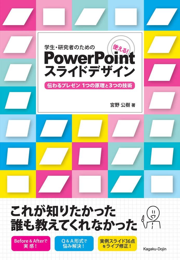 商品の説明 (新品の場合) | これまでありそうでなかったPowerPointプレゼンの「スライド作成」に特化した新しい書籍.プレゼンにおけるメッセージ伝達力の向上を目標とし,メッセージを効果的に聴衆に伝えるスライド上の巧妙な仕組みを「1つの原理と3つの技術」に落とし込んでいる.その原理原則をもとに,実際に大学院生や研究者が作成したスライドを著者が修正していく.この「パワポ講座の形式」が本書の最大のウリである.その他,第4部「プレゼン全般に関するQ&A」ではスライド作成にとどまらず発表構成の作り方,論理的に発表するコツなど,研究力を習得することまで網羅した.理工系だけでなく文系も必読の一冊となっている. |