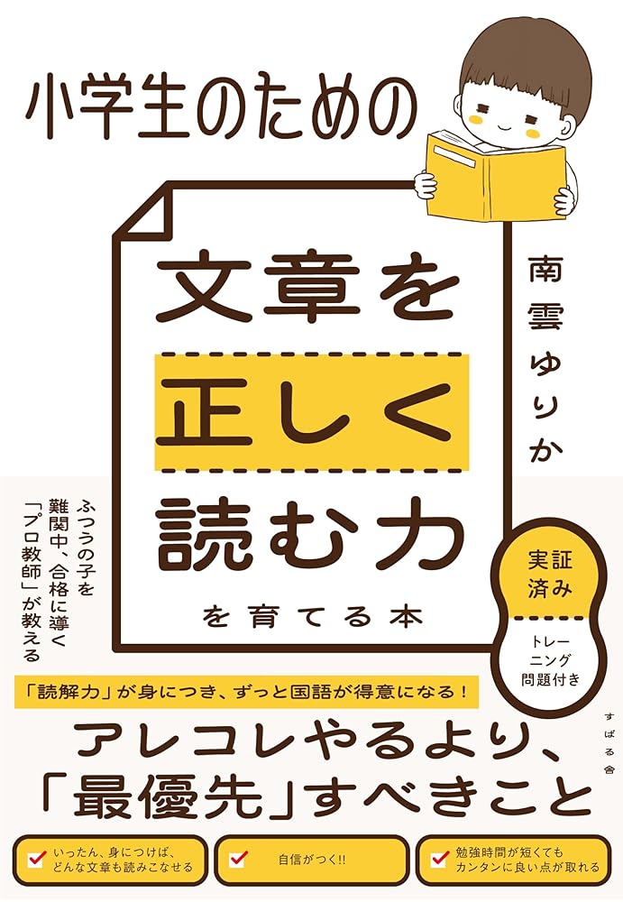 | 商品の説明 | 文章を「正しく」読まないために、国語の成績が伸びないお子さんが多いです。多くのお子さんが、フィーリングに頼った感覚的な読み方をしたり、ざっと読んだりするくせがあります。この状態で、いくらドリルを解いても、読解力はつきません。まずは、文章を正しく読む力を身につけましょう。本書では、正しく読むための「5つのポイント」をわかりやすく説明しており、練習問題を解きながら力をつけていくことができます。また本書では、文章を正しく読むための「精読トレーニング」も紹介しています。本を読む習慣がない、国語が苦手なお子さんでも、この精読トレーニングをすることで、文章を読む力が身につくため、国語の勉強が面白くなり、成績がぐんぐん上がっていきます。難関中に合格するお子さんたちも実践している方法をわかりやすくご紹介します。 1章 このキホンで読解力が上がる 〜正しく読む力で、国語がずっと得意になる! 2章 国語力の土台になる 〜毎日10分は、本を読もう 3章 押さえておきたいのはココ! 〜正しく読むための「5つのポイント」 4章 実践! 精読トレーニング(1)〜「一文」を正しく読む 5章 実践! 精読トレーニング(2)〜「短い文章」を正しく読む 6章 実践! 精読トレーニング(3)〜「長文」を正しく読む |