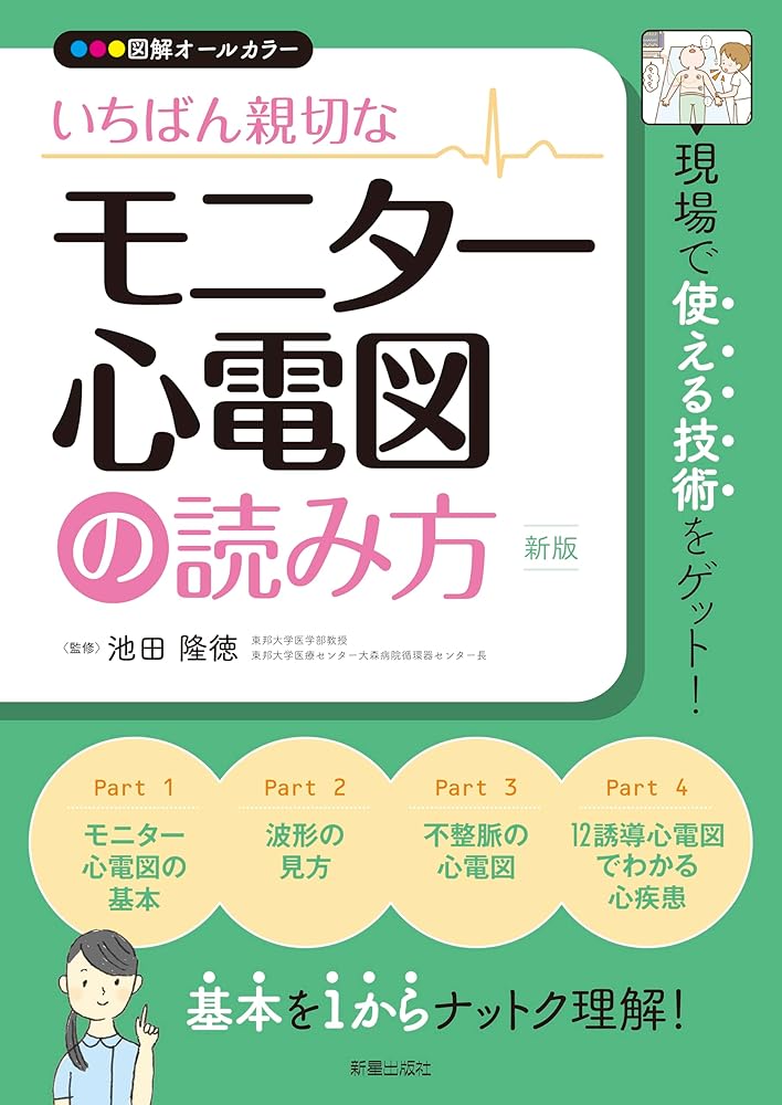 | 商品の説明 | 本書は心電図が苦手な人が多い現実を踏まえ、どの本よりも、やさしく丁寧に解説。各章の冒頭にはマンガをつけ、臨場感を持てるように工夫。 解剖図や心臓図は、元看護師のイラストレーターが担当。 「心臓」「整脈」を正しく理解した上、「心室細動」「心室頻脈」をはじめ、現場で出くわす可能性が高い13の不整脈を取り上げ、「波形の特徴」「発生のメカニズム」「対処のポイント」などをしっかり解説。 定評あるロングセラーの新版です。 【本書の特徴】 ●「心臓のしくみ」など、基礎中の基礎知識から噛みくだいて解説することで、これから心電図を学ぶ看護学生はもちろん、新人看護師や救急隊員などメディカルプロフェッショナルも十分理解し、活用できる内容に。 ●心電図を見て「不整脈(異常な波形)」を見抜くには、「整脈(正常な波形)」を正しく理解することが欠かせない。このことから、正常な波形についても徹底して丁寧に解説。 ●「心室細動」「心室頻脈」をはじめ、現場で出くわす可能性が高い13の不整脈を取り上げ、「波形の特徴」「発生のメカニズム」「対処のポイント」などをしっかり解説。 ●各章の冒頭に見開きマンガをつけ、その章の要点をひと掴みできるようにしている。丸暗記ではなく、常に、臨場感を持てるように工夫。 ●看護学生や新人看護師が安心して読めるように、やさしくやわらかいデザイン・レイアウトに。わかりやすく、丁寧にデフォルメしたイラスト図解や手書きの文字も多用。 ●解剖図や心臓図は、元看護師のイラストレーターが担当。デフォルメされたものでも、信頼度の高いイラストに仕上がり。 ●「モニター心電図」を学ぶ最初の1冊として最適であり、かつ、実践(現場)への橋渡し役として十二分に活用できる内容。 |