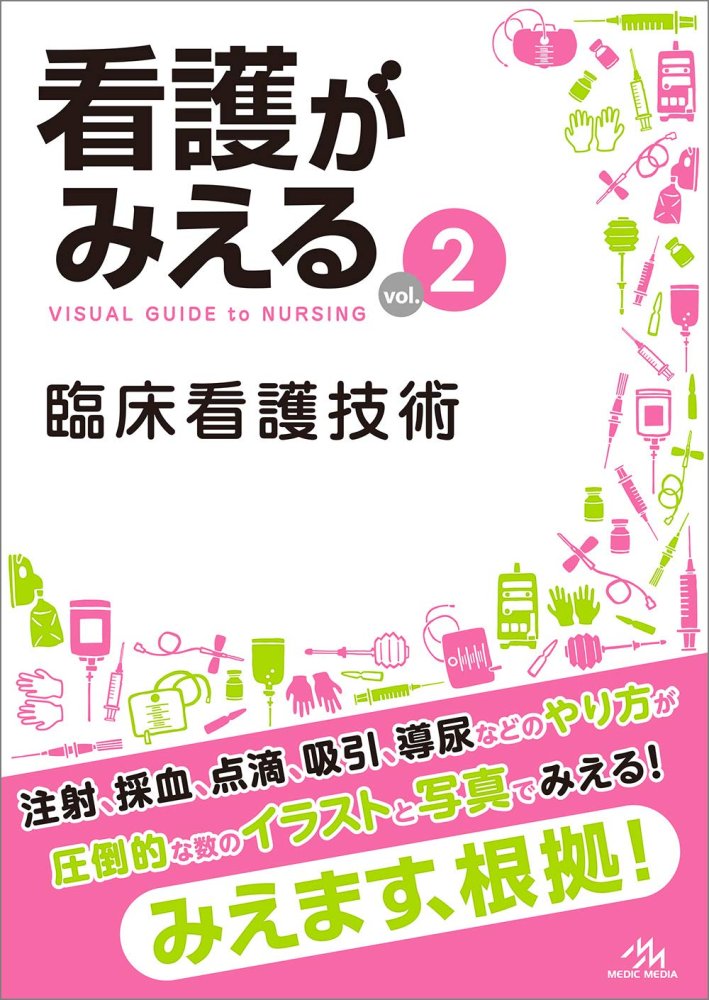 | 商品の説明 (新品の場合) | 看護学生に大人気の看護技術本『看護技術がみえるvol.2』が『看護がみえる』シリーズの1冊としてリニューアル! 注射や採血など侵襲的な技術の手順や周辺知識を、圧倒的な数のイラストと写真で解説しています。臨床現場で使える看護技術のコツや注意点、手順の根拠やポイントなどが満載の一冊です。 ●主なリニューアルポイント ・採血 :シリンジ採血後の分注用ホルダーを追加 ・注射 :筋肉注射後にもんではいけない薬剤を追加 ・輸血 :日本赤十字社が公開している最新情報(2018年9月時点)に対応 ・血糖管理:『糖尿病治療ガイド2018-2019』に対応 ・吸引 :ゲージ付き吸引器での吸引圧設定を追加 ・酸素療法:『酸素療法マニュアル(2017年発行)』に対応 ・栄養管理:脂肪乳剤使用時の注意点を追加 ・排泄ケア(侵襲を伴う技術):『慢性便秘症診療ガイドライン2017』に対応 ・排泄ケア(侵襲を伴う技術): 日本看護技術学会『グリセリン浣腸Q&A』に対応 ・救急蘇生法:『JRC蘇生ガイドライン2015』に対応 など ●コピーして実習に持っていける「基準値早見表」も追加しました。 |