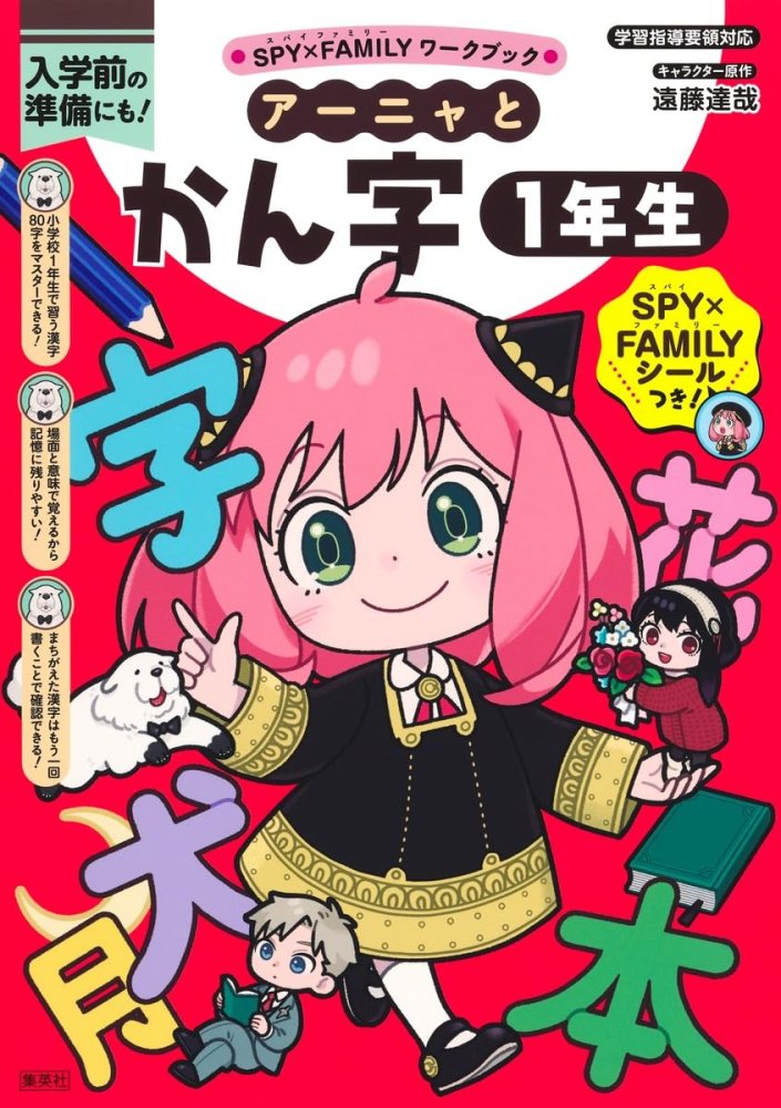 | 商品の説明 (新品の場合) | 人気まんが『SPY×FAMILY』のキャラクターと楽しく学べる 「SPY×FAMILYワークブックシリーズ」で 1年生で習う漢字をマスターしよう! 〈本書の特長〉 ●学習指導要領に対応。小学校1年生で習う漢字80字をマスターできる! ●豊富なイラストによる、場面と意味で覚えるから記憶に残りやすい! ●まちがえた漢字はもう一回書くことで効率良く確認できる! ●人気キャラクターたちのかわいいSPY×FAMILYシールつき 全てのミッションをクリアしたらステラ(星)シールも貼れる! 〈もくじ〉 この本のつかいかた すうじ(1) 一/二/三/四/五/六 すうじ(2) 七/八/九/十/百/千 まとめテスト(すうじ(1)/すうじ(2)) おおきさ・むき 大/中/小/上/下/左/右 がっこう(1) 円/玉/音/文/字/年 まとめテスト(おおきさ・むき/がっこう(1)) がっこう(2) 学/校/名/先/生/本 からだ 目/口/耳/手/足/力 まとめテスト(がっこう(2)/からだ) ミッション1 しぜん(1) 山/川/石/花/草/竹/金 しぜん(2) 木/火/土/糸/水/林/森 まとめテスト(しぜん(1)/しぜん(2)) ひと・いきもの 犬/虫/貝/人/男/女/子/王 てんき 天/気/雨/空/月/日/夕 まとめテスト(ひと・いきもの/てんき) ミッション2 うごき・ようす 出/入/見/休/立/早/正 まち・いろ 白/赤/青/町/車/村/田 まとめテスト(うごき・ようす/まち・いろ) さいしゅうオペレーション おめでとう! 1年生かん字マスター 〈この本を作った人〉 キャラクター原作/遠藤達哉(『SPY×FAMILY』) イラスト/トリル ペキォ |