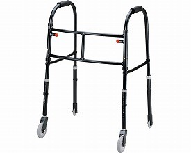 ・脚部が太く、大きい構造のため、より低重心で安定感があり、ご利用者様に安心してお使いいただけます。非常に小回りがきき、体重をかけたときは2点でブレーキがかかって安定します。