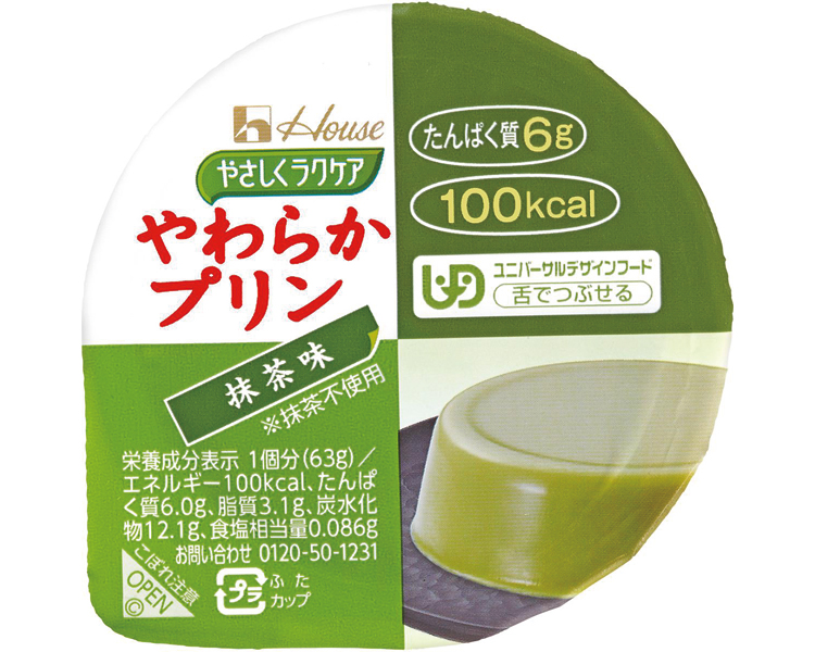 やさしくラクケア やわらかプリン 抹茶味 / 091240 63g(ハウスギャバン)