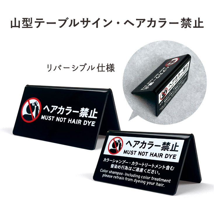 シンプルで使いやすいリバーシブル仕様のヘアカラー禁止サインです。