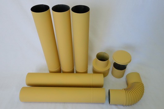 ステンレス煙突にケレン作業後、カラー薪ストーブと同様に下地塗りとカラー塗装の2度塗りをします。