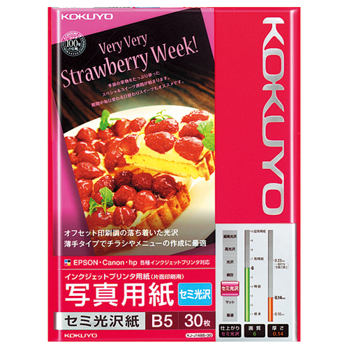コクヨ インクジェットプリンタ用紙 写真用紙 セミ光沢 B5 30枚 KJ−J14B5−30