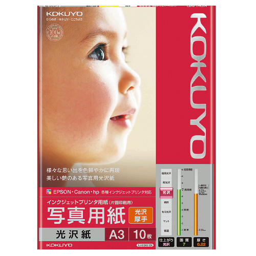 コクヨ インクジェットプリンタ用紙 写真用紙 光沢・厚手 A3 10枚 KJ−G13A3−10N