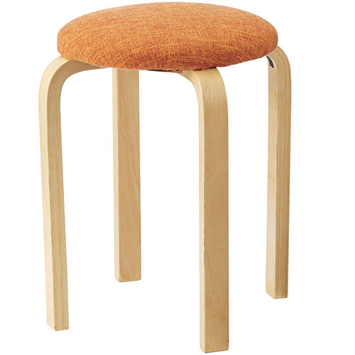 布張りでカジュアルな木製スツール/オレンジ。