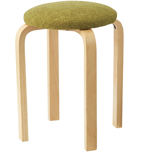 布張りでカジュアルな木製スツール/グリーン。