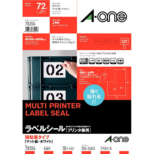 エーワン ラベルシール[兼用]強粘着 4面18枚 78204 78204