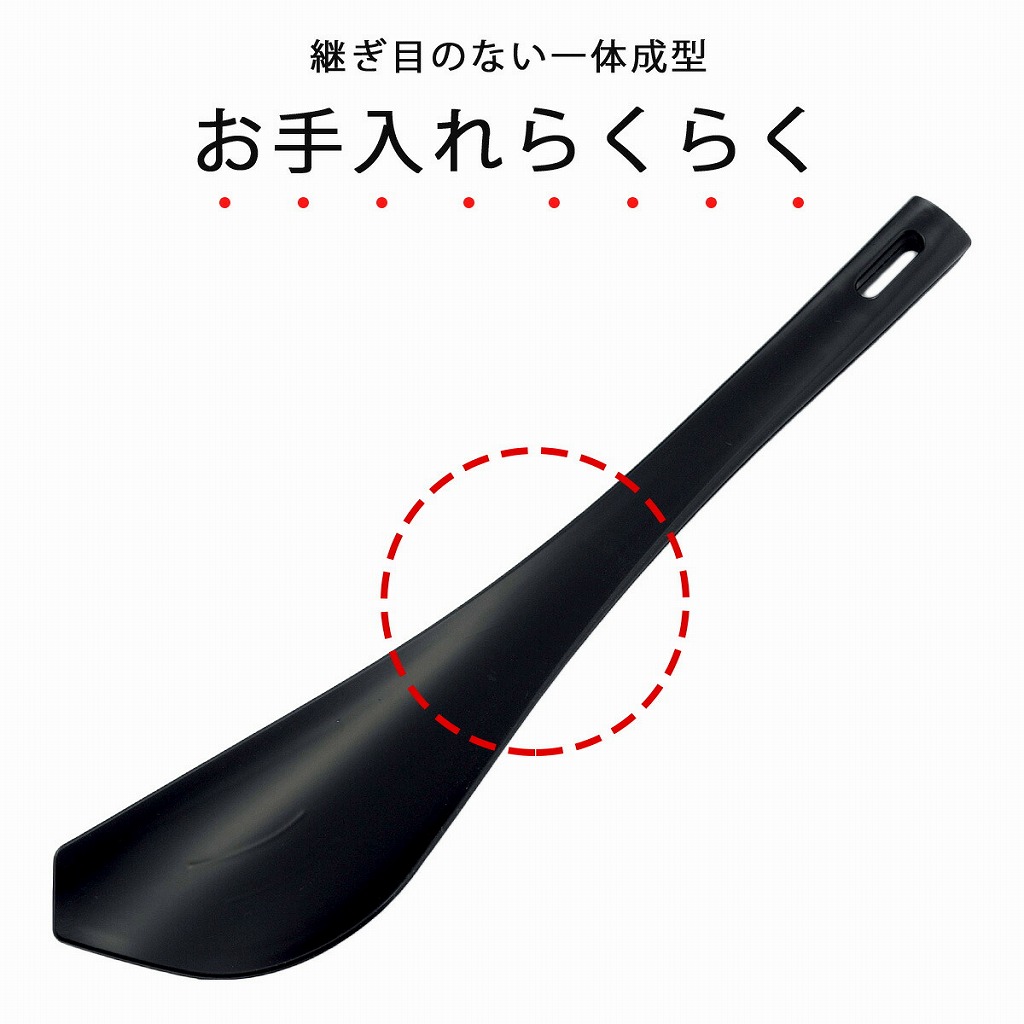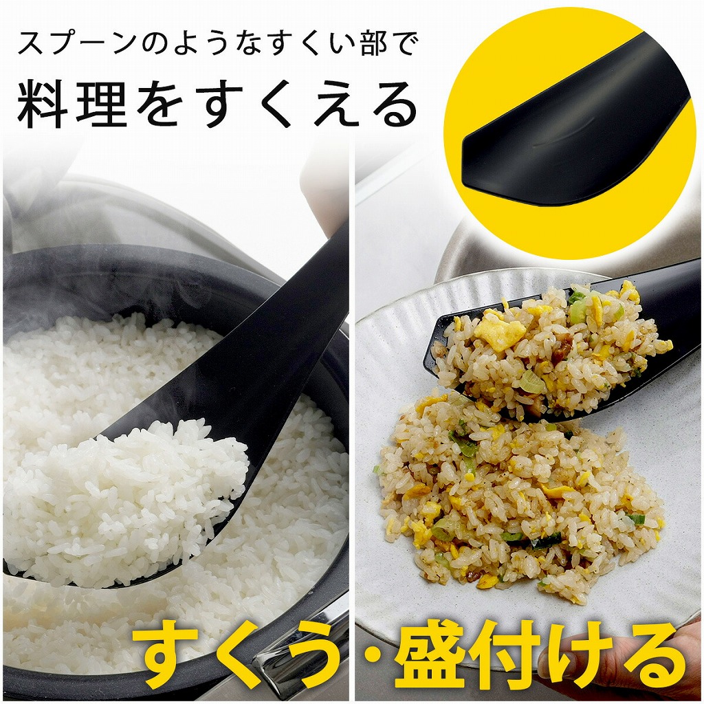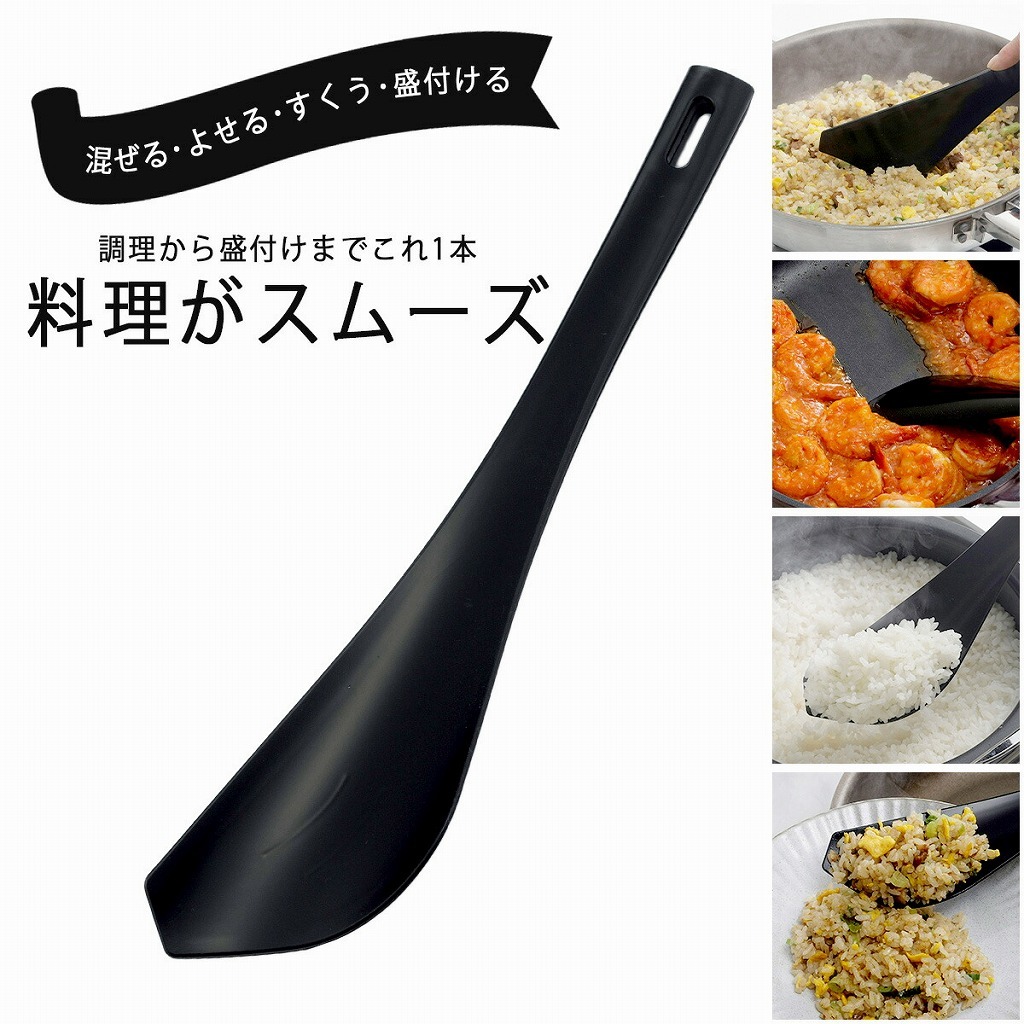 | 商品説明 | まぜる・よせる・すくう・盛り付けるがこれ1本でできます。先端が柔らかいので炒め物調理で切るように混ぜてもフライパンをキズつけません。一体成形でお手入れカンタン。 |