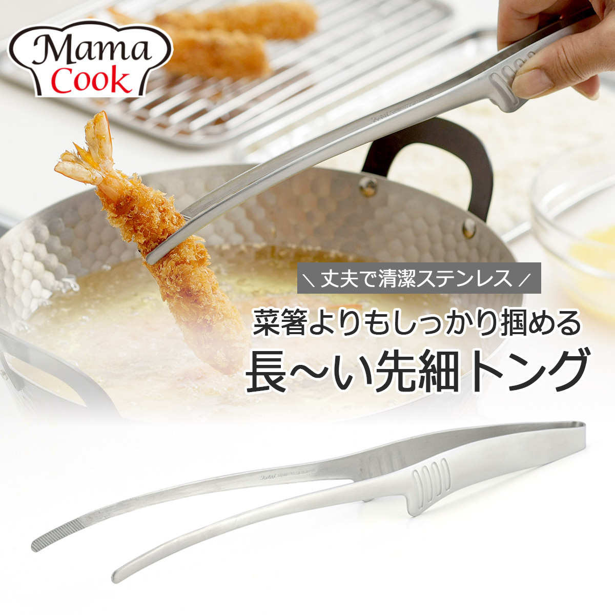 | 商品説明 | 先が長い!揚げ物や焼肉など熱くなりやすい料理に。しっかりつかめる先端形状!どの向きに置いても先端がテーブルに触れません。菜箸のような細めの先端部で、つかみにくい食材もラクラクつかめます。継ぎ目のない一体型ステンレス製、汚れが付きにくく清潔。食卓での取り分けはもちろん、揚げ物やゆでた食材を取り出す時にも便利に使えます。食器洗浄機対応です。 |