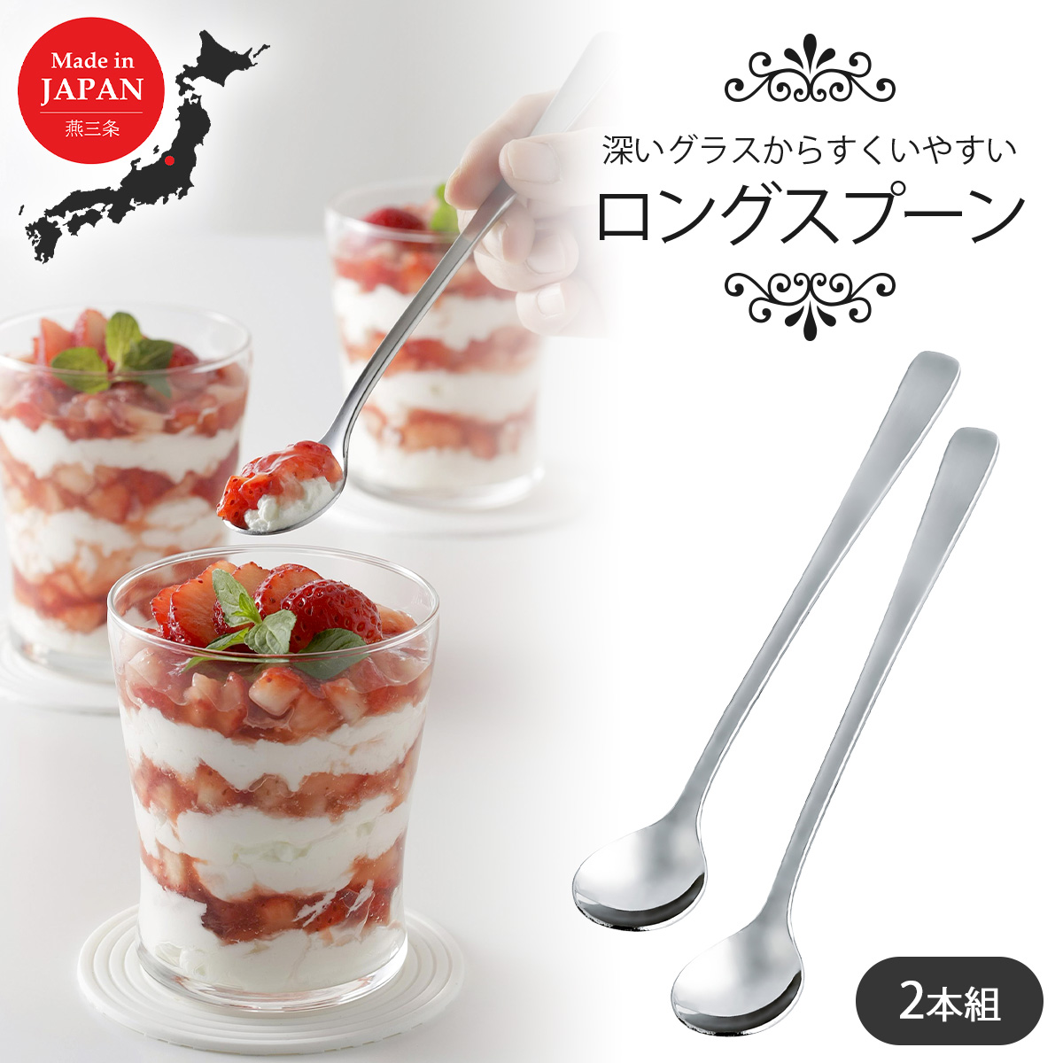 TSUBAME ロングスプーン 2本組 日本製 ステンレス パフェスプーン ジャムスプーン 瓶 ジャム マヨネーズ スプーン 匙 パーティ 食洗機対応 下村企販