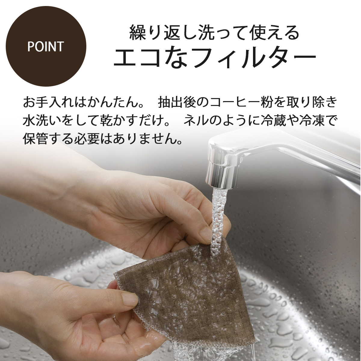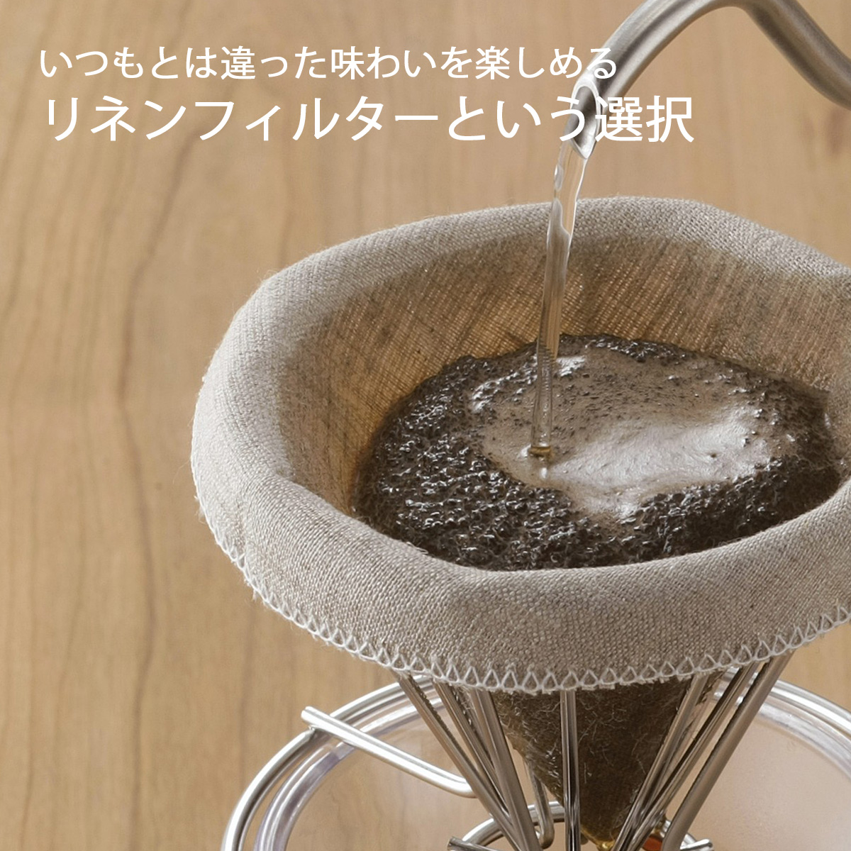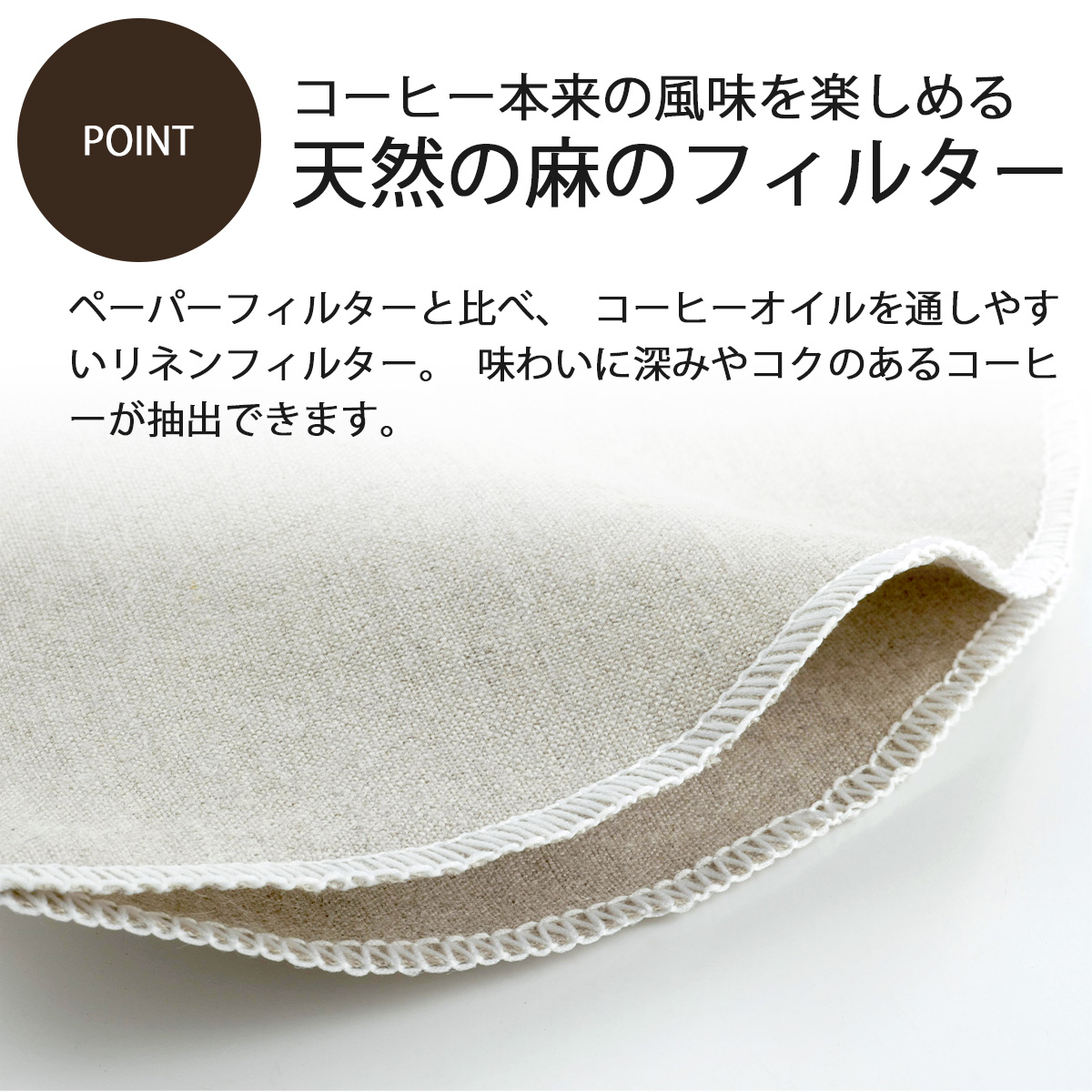 小サイズのリネンフィルター。コーヒーオイルが抽出できて風味のある味わいに。天然素材の麻を使用することで、洗って繰り返し使えるコーヒー用フィルターです。円錐型のドリッパーに使用でき、一度に1〜2杯のコーヒーを淹れられます。※扇型のドリッパーには使用できません。