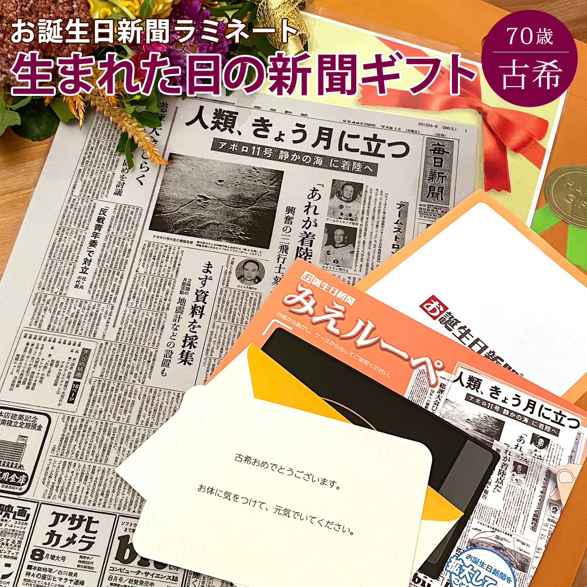 古希のお祝い 女性 男性 古希祝い プレゼント プチギフト 70歳 贈り物 長寿祝い お誕生日新聞 生まれた日の新聞 ラミネート 加工
