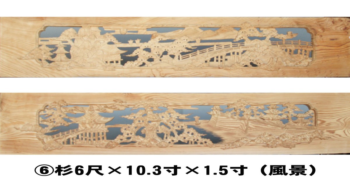 (6)杉6尺×10.3寸×1.5寸(風景彫刻)2枚組【現品限り】