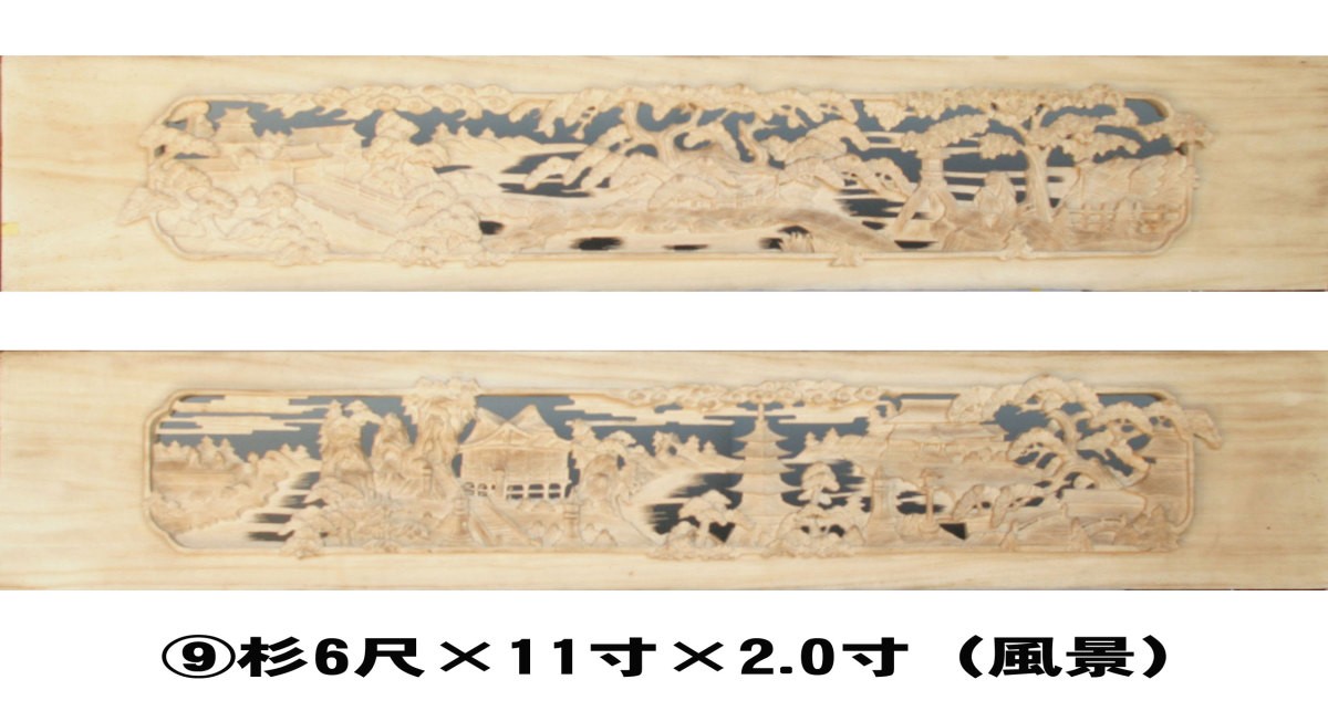 (9)杉6尺×11寸×2.0寸(風景彫刻)2枚組【現品限り】