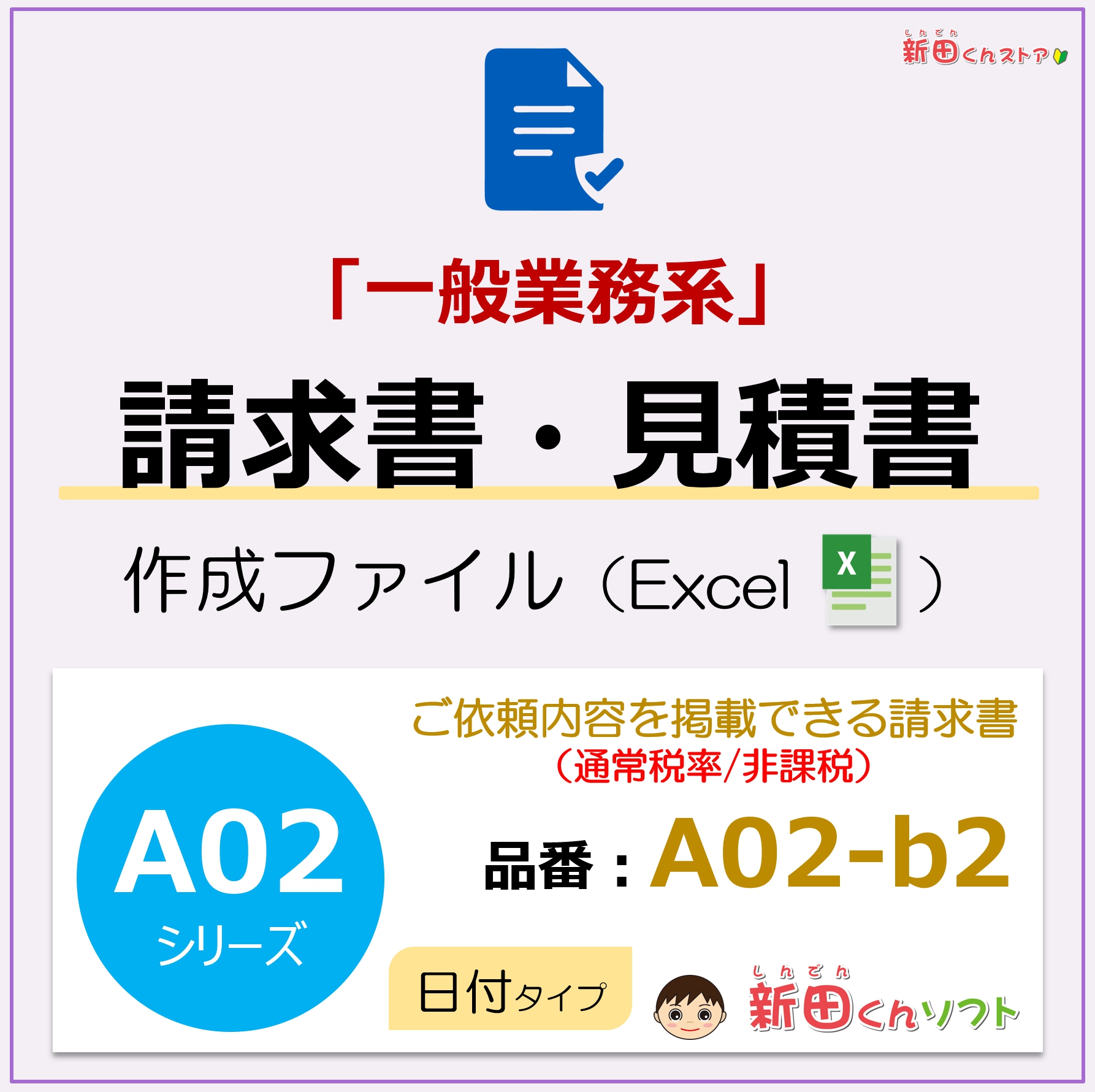 A02-b2 請求書ファイル(日付欄・軽減税率なし)Excel エクセル 新田くんソフト