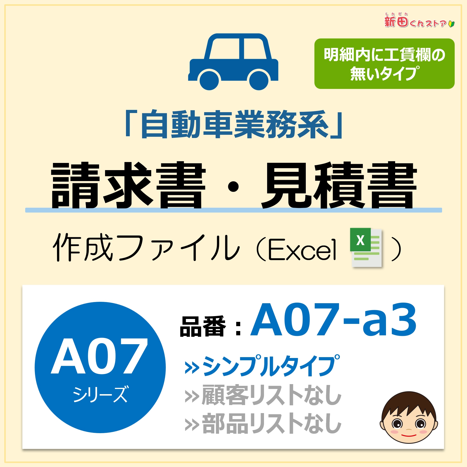 A07-a3 請求書・シンプルタイプ(請求書・見積書・納品書・領収書) Excel パソコン 車検 点検 ファイル 新田くんソフト
