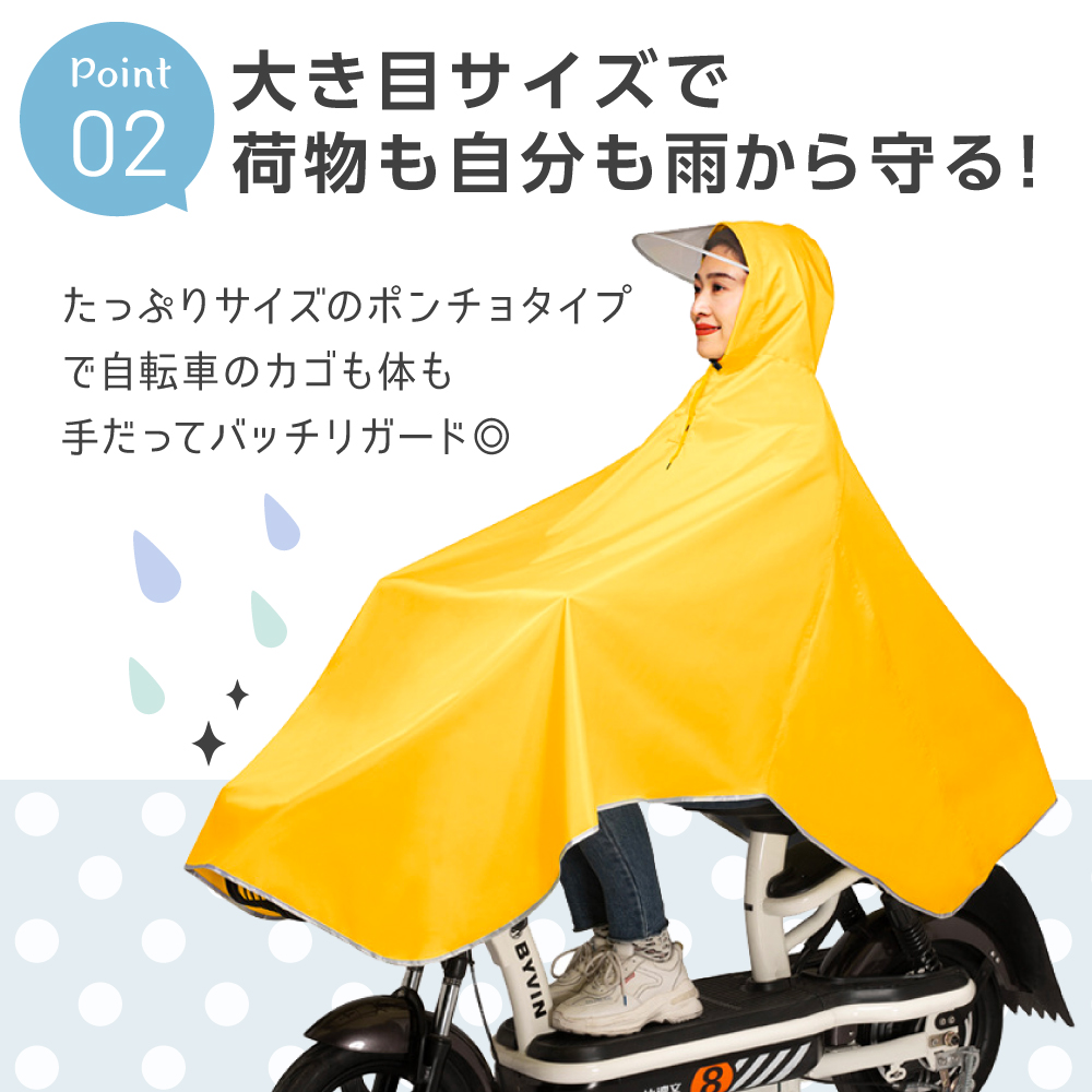 大き目のポンチョタイプの為、荷物も雨から守ります。