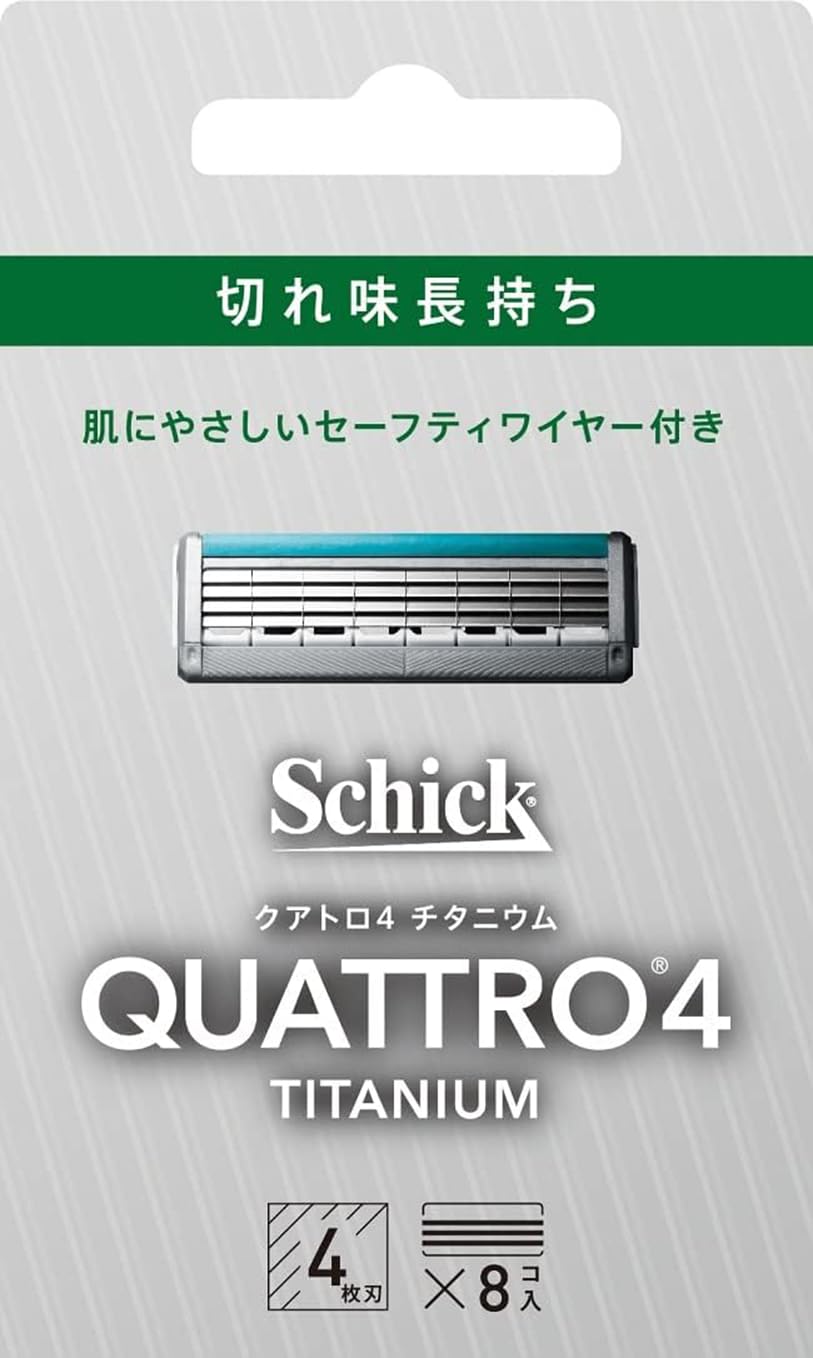 クアトロ Schick(シック) クアトロ4 チタニウム 替刃 (8コ入) ドイツ製 4枚刃 セーフティワイヤー付 シルバー
